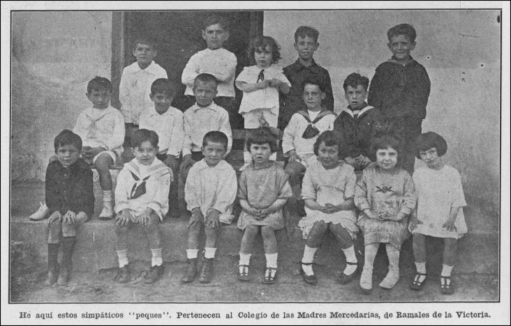 He aquí estos simpáticos «peques». Pertenecen al colegio de las Madres Mercedarias, de Ramales de la Victoria. La Montaña: revista semanal de la colonia montañesa; Año XIII Número 14. Habana 31 de Julio de 1928.