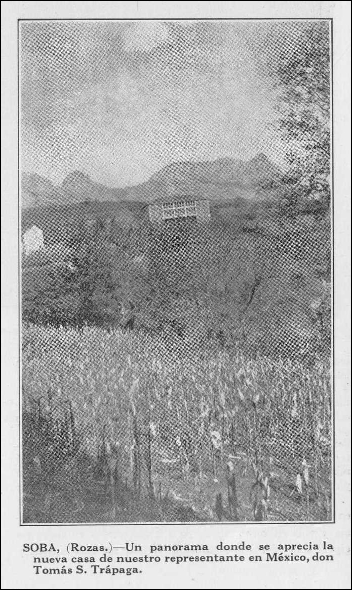 1919. Soba. Rozas. Un panorama donde se aprecia la nueva casa de nuestro representante en México, Don Tomás Sainz Trápaga.