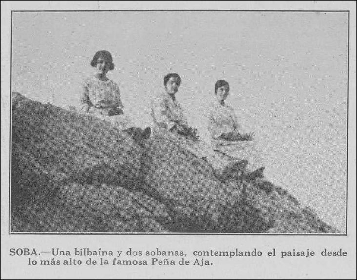 1921. Soba. Una bilbaína y dos sobanas, contemplando el paisaje desde lo más alto de la famosa Peña de Aja.