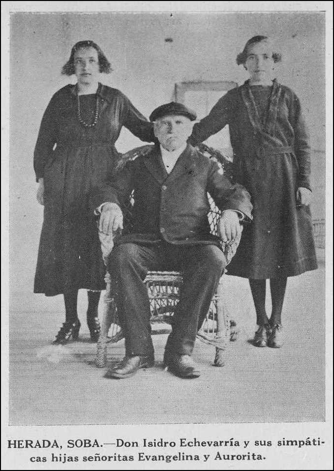 Herada, Soba.- Don Isidro Echevarría y sus simpáticas hijas señoritas Evangelina y Aurorita.