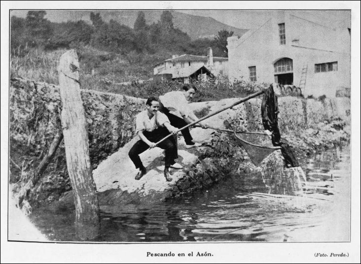 Pescando en el Asón. La Montaña: revista semanal de la colonia montañesa; Año III Número 6 – Habana 9 de Febrero de 1918.