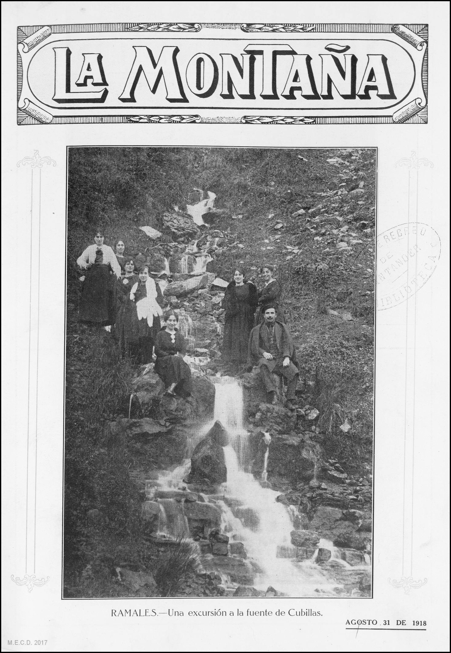RAMALES. Una excursión a la fuente de Cubillas. La Montaña: revista semanal de la colonia montañesa; Año III Número 35 – Habana 31 de Agosto de 1918.