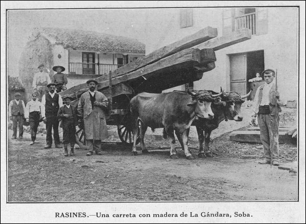 RASINES. Una carreta con madera de La Gándara, Soba. La Montaña: revista semanal de la colonia montañesa; Año III Número 1 – Habana 5 de Enero de 1918.