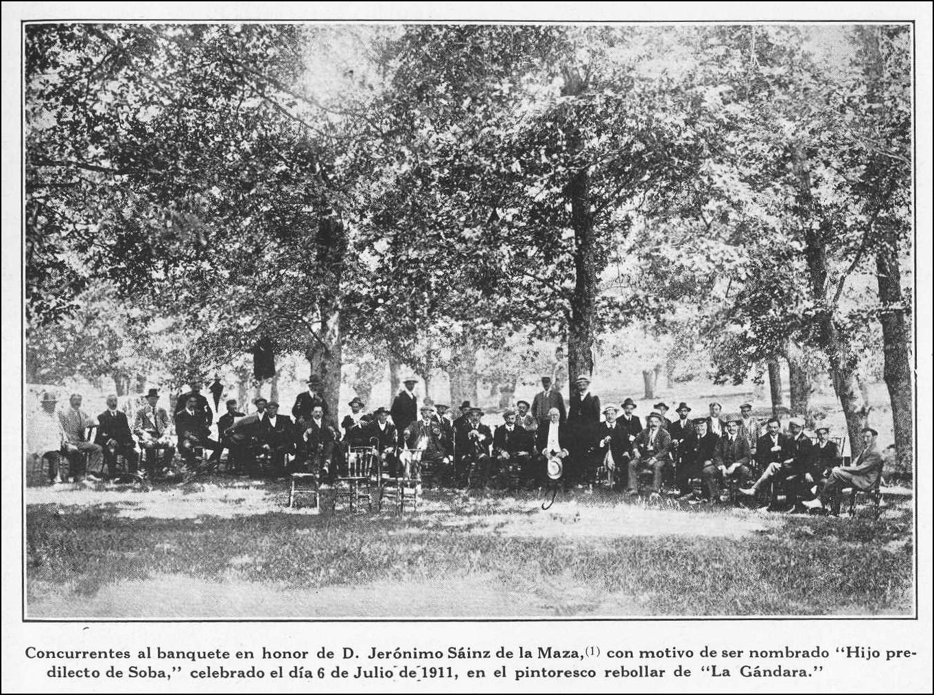 Concurrentes al banquete en honor de D. Jerónimo Sainz de la Maza, con motivo de ser nombrado «Hijo predilecto de Soba», celebrado el día 6 de Julio de 1911, en el pintoresco rebollar de «La Gándara». La Montaña: revista semanal de la colonia montañesa; Año II Número 24 – Habana 16 de Junio de 1917.
